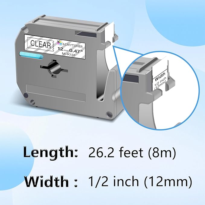 - Package includes: 3 pack compatible for brother p-touch mk131 m131 m-k131 m-k131s non-laminated label maker tape. Color: black ink on clear tape. Width: 1/2 inch (12mm), length: 26.2 feet (8m).