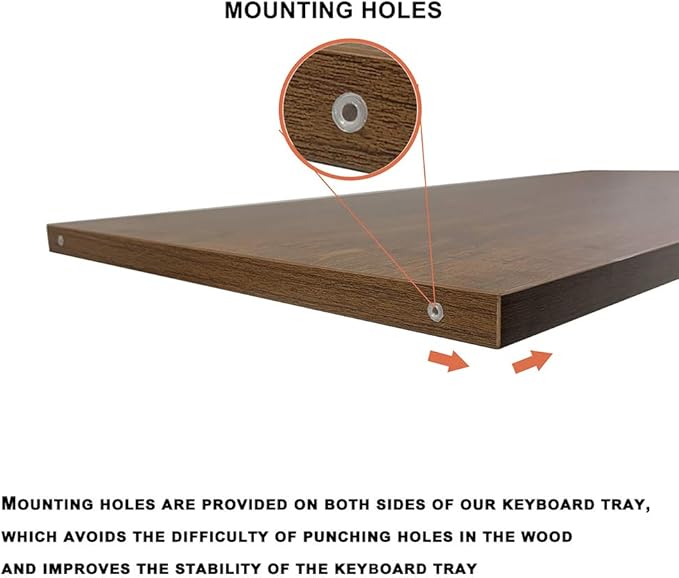 - SIMPLE ZERO EFFORT INSTALLATION:Mounting holes are provided on both sides of our keyboard tray, which avoids the difficulty of punching holes in the wood and improves the stability of the keyboard tray and quickly for an easy once for all install.Ball Bearing slides and all hardware are already provided in the package!