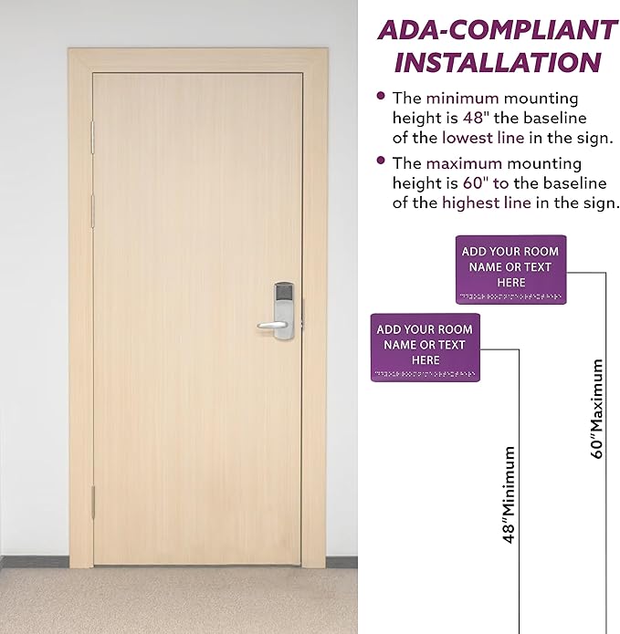- šØ DESIGNED TO MEET ADA REGULATIONS: ADA compliant signs feature Braille text to help blind people who are in need of assistance. Double tape sign furnished with great color contrast and designed to meet ADA (Americans with Disabilities Act) regulations.