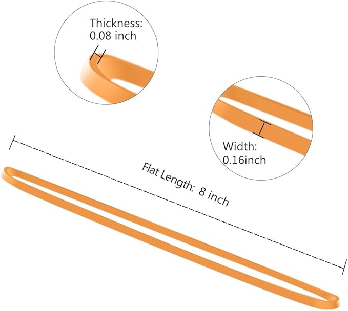 - Stretchable and Sizeable: Each rubber band measures 20 cm/8 inches in flat length and stretches up to 4.5 times its size, providing excellent flexibility for bundling objects. The rubberband is 4 mm/ 0.16 inch in width and 2 mm/ 0.08 inch in thickness.