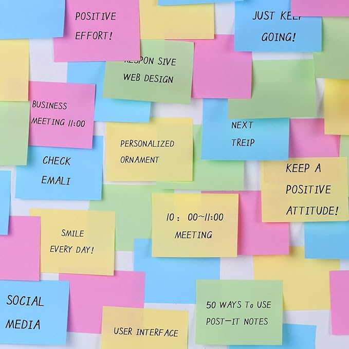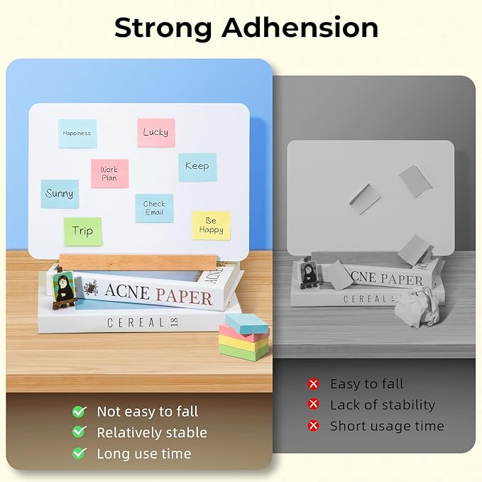 - Super Sticky: Strong adhesive, make sure sticky notes don't fall off, helping you note great ideas and removes cleanly as well.