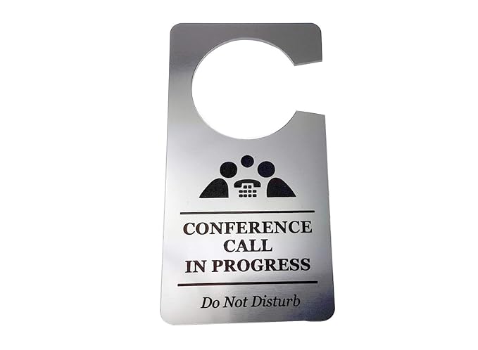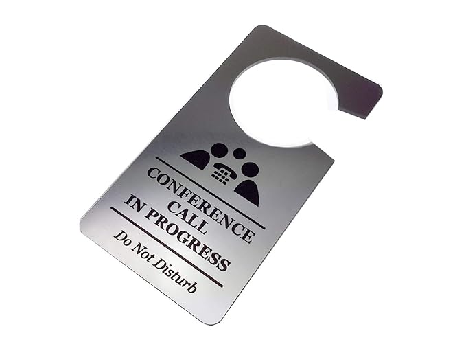 - ☎️ ENGRAVED DOOR HANGER - with text and graphic icon on front, 'Conference Call In Progress, Do Not Disturb', plain black on reverse.