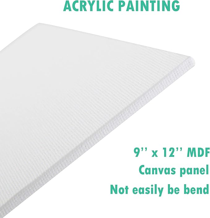 - Various Accessories: Falling in Art 9x12" canvas panels are great for acrylic and oil painting. 12 different acrylic tubes can match your basic painting needs with a palette. The nylon brush set includes round, flat, and angular shapes, fitting for any painting style.