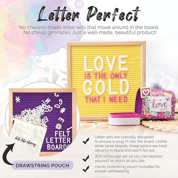 - All-In-One Felt Letter Board Set: Our felt changeable letter boards also include everything for easy setup: pre-drilled holes, picture hanging wire, steel L-brackets for support, and felt pads to protect your walls, and secure long-term use