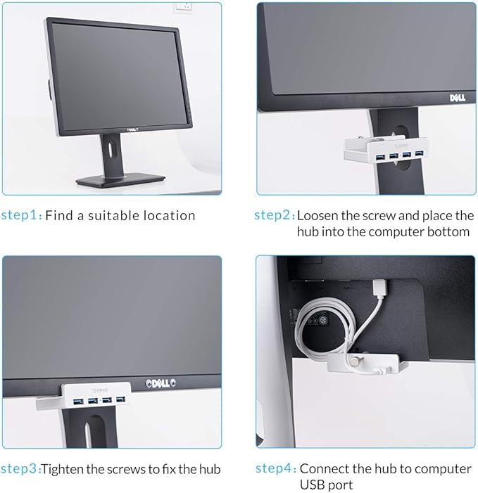 - Clip Usb Hub: ORICO USB Hub designed with adjustable screw allow you to mount monitor screen edge or desk edge thickness from 0.39 to 1.26 inches (10-32mm), without occupying much space and keeping your desk top neat. The fix Hub is easy installation and sturdy and rubber cover on the screw can protect monitor's finish.