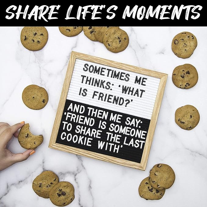 Felt Like Sharing Square Letter Board (Black and White Felt - 10”x10”) – Changeable Message Board w/3 Sets of Felt Board Letters – Statement Wall Sign for Quotes, Home or Holiday Decor In Oak Frame