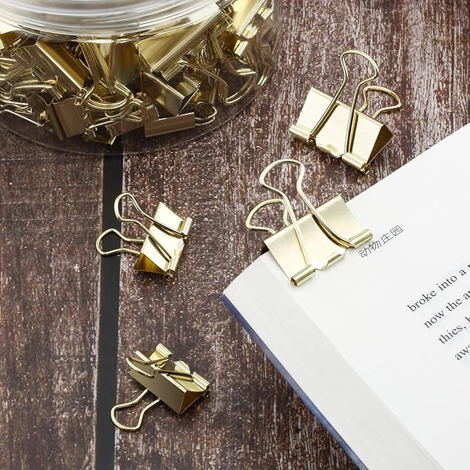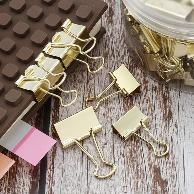TecUnite 150 Pcs Binder Clips Assorted Sizes Gold Paper Clamps Clips Large Medium Small Office Supplies
