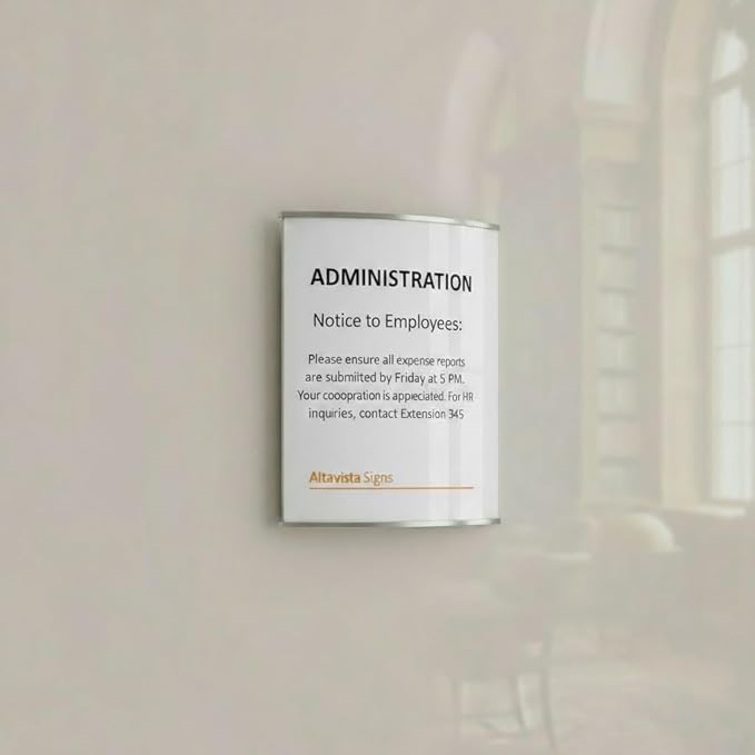 Altavista Signs Set of 10, Metal Sign Holder NAMEPLATE for Wall OR Door Easy Mount Curvature Design Silver A5 Size 6.00" W x 8.27" H | Non Reflective Front Screen | Paper Insert Sign