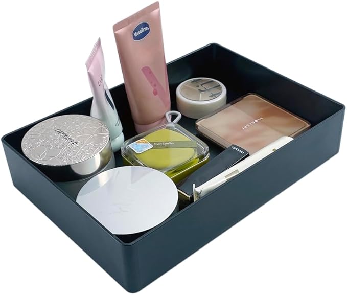 Amazon Basics Rectangular Plastic Desk Organizer with Storage Trays, Accessory Tray, 9.4 x 6.7 x 2 inch, Black, 1 Pack