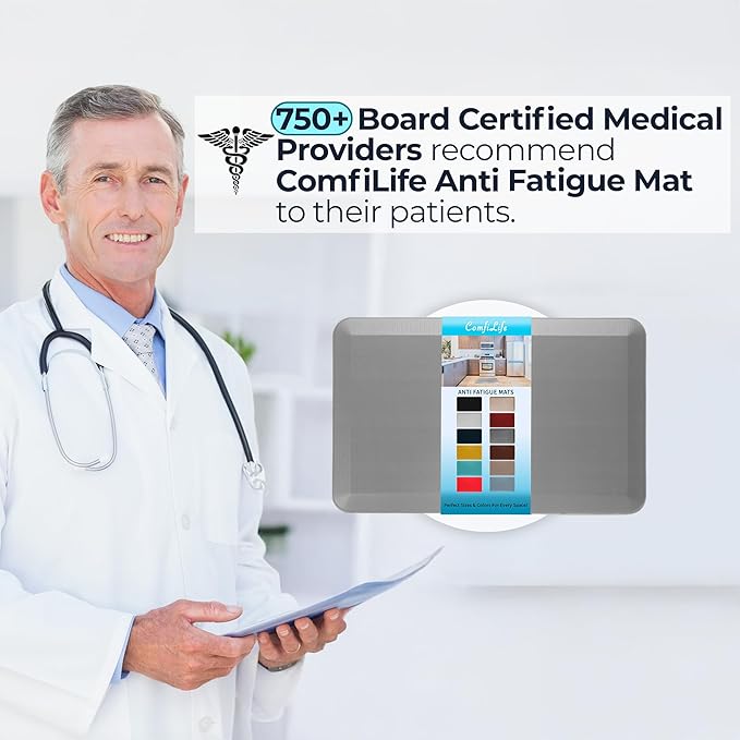 - Exceptional Comfort Anti Fatigue Mat: ComfiLife kitchen mats for floor enhance comfort while standing. It is professionally engineered and can be used as padded kitchen mat or for your standup desk that will not lose support over time. Ideal for use as a standing desk mat., kitchen mats cushioned anti fatigue, kitchen floor mat or anti-fatigue mats for kitchen floor.