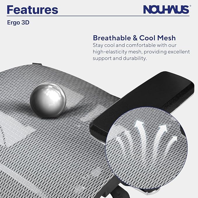 - 【Minimalist Design】:This ergonomic chair provides four support points (head, back, hip, and hands) with proper lumbar support. NOUHAUS designs its products based on user needs. The seat and headrest height, as well as the lumbar and back support, can be adjusted according to the user's habits and needs, making it suitable for those who work at a desk for long periods to reduce pain. Easy to install: With simple and clear installation instructions, anyone can assemble the chair in eight easy steps.