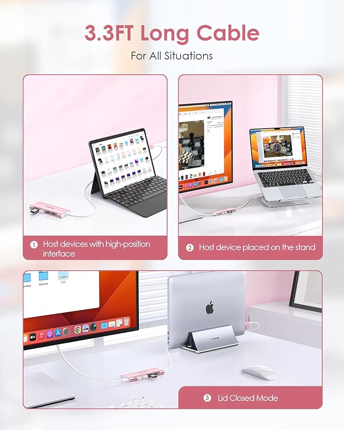 - Extra Cable Extension: This particularly features a 3.3 feet super long cable, making LENTION CB-C35-1M USB C hub an ideal solution to maximize your device's capability to create a more efficient workstation and freely adjust the desktop layout as you like
