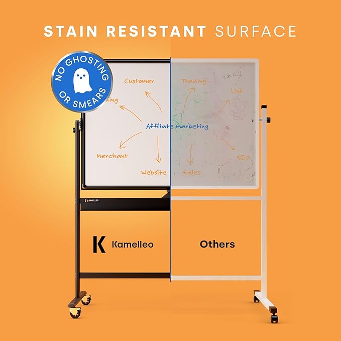 - Built to Last: Whether used in the office, classroom, or home, Kamelleo’s mobile dry-erase whiteboards are designed to hold up over years of frequent use. While other whiteboards will stain or break due to poor construction, our dry-erase whiteboards are known for their durability and reliability when you need it most!