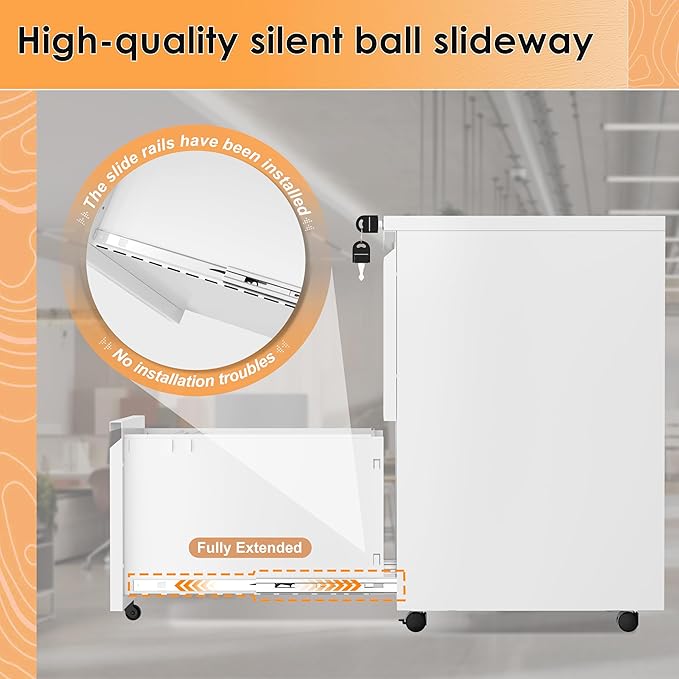 - 【5 Universal Casters】:White filing cabinet with 5 wheels, 2 of them can be locked, the one wheel located under the front will prevent tipping. It is convenient to move and secure to the floor