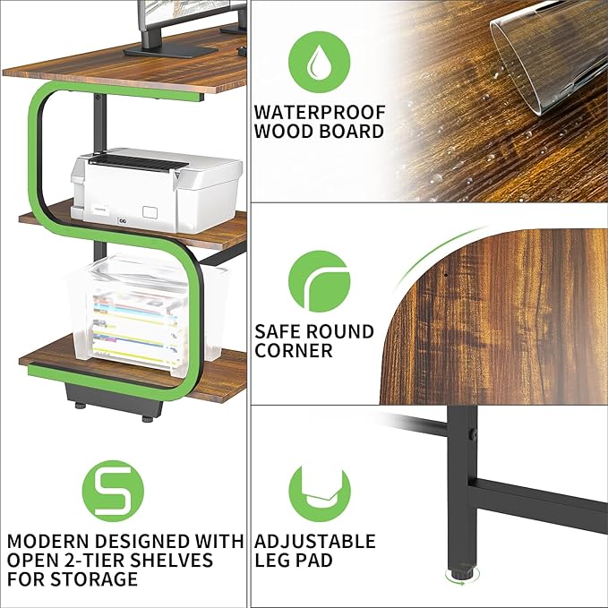 - Versatile Storage Space: This computer desk features an open 2-tier shelves for storing books or documents or for displaying decorative items. It also has enough space for your monitors, laptops or maybe other office supplies, makes everything you need accessible.