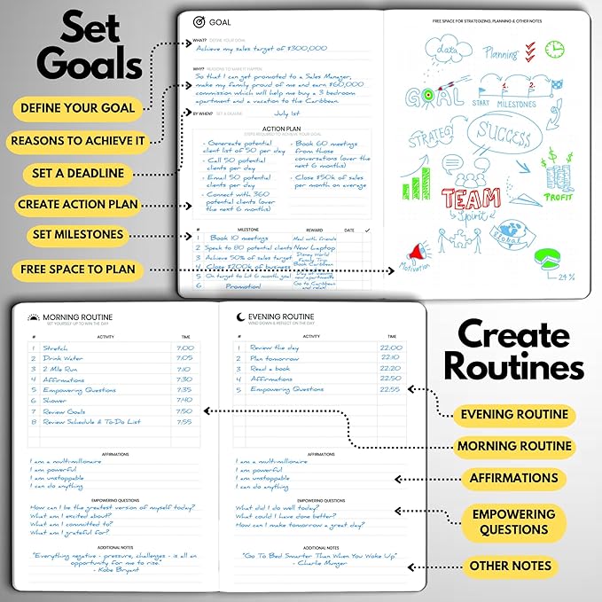 - STAY ALIGNED WITH YOUR GOALS – Use built-in goal-setting tools and review prompts to stay focused on long-term success—whether you’re managing business milestones, career growth, or personal development.
