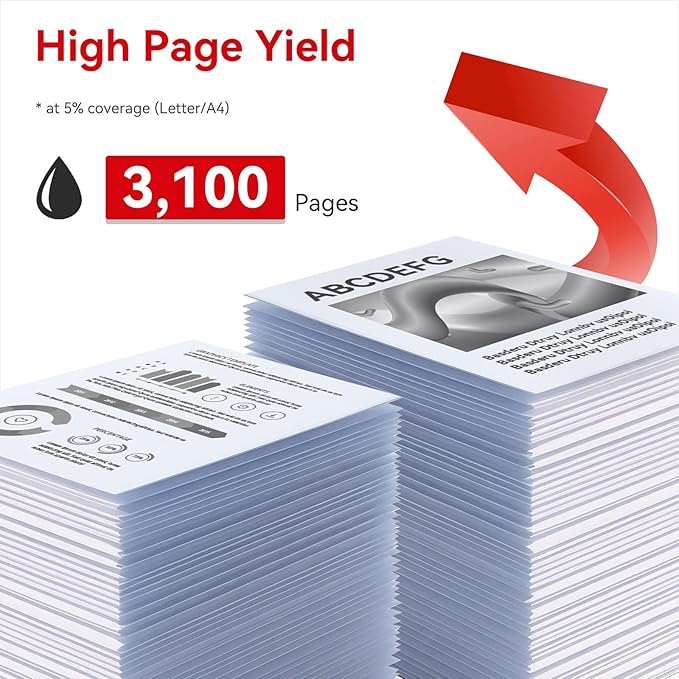 - High Page Yield: Up to 3,100 Pages compatible with Canon 054H Black Toner Cartridge (Letter/A4, at 5% coverage)