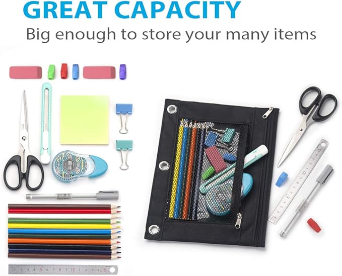 - Multiple Function Binder Pockets: Easy to place the pouches in a standard 3 ring binder, and itβs the perfect size to hold your pencils, sharpeners, markers, pens, glue sticks, erasers, highlighters. Its also Great for organize your small suppliers, such as passport, puzzles, games,craft dies etc