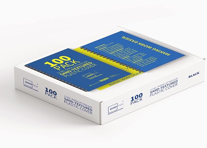 Binditek 100 Pack 12 Mil Sand-Textured Polycover - Plastic Binding Cover for Letter Size - Lightly Sanded Finish - Business Reports and Proposals - Square Corners, Un-Punched, Black