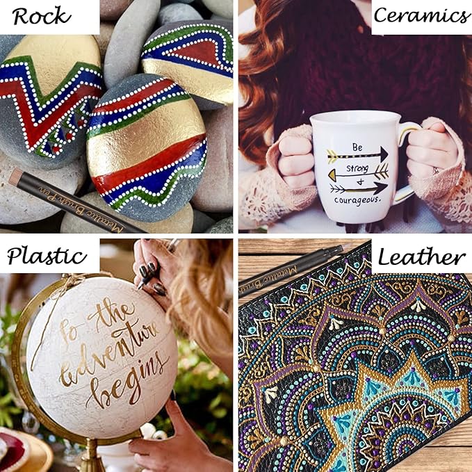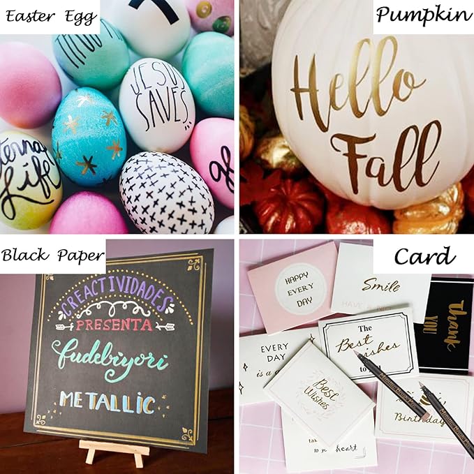 - Marks on Most Surfaces - Acid-free metallic markers for black paper, and work on most surfaces, such as ceramic, fabric, cardstock, rock, wood, and more. Unlike most metallic paint pens, you do not need to shake them when using our bright metallic markers