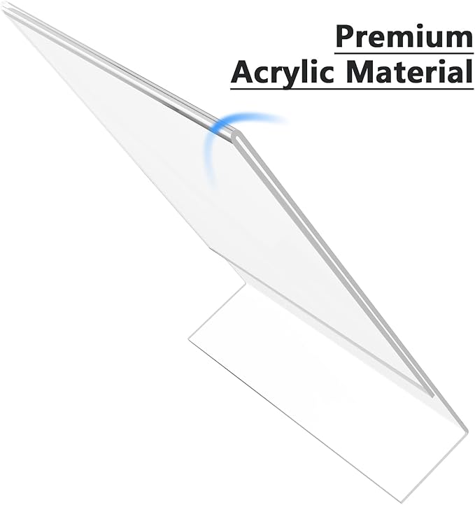 - Stable Slant Back Design: Our acrylic display stand is designed with a wide stable base. With the innovative slant-back self-standing design, our acrylic sign holder is stable enough which makes it an ideal choice for displaying images, brochures, and pamphlets and important information in any location