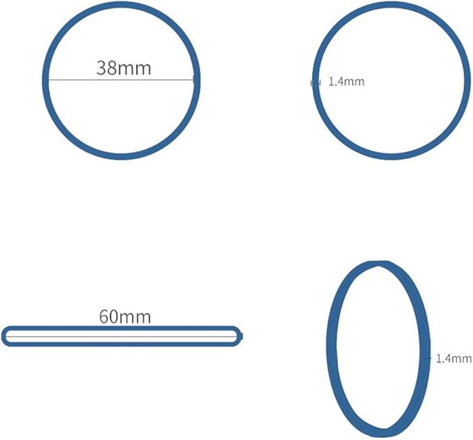 - Size:Each Rubber Band is about 60mm/2.37" diameter internal diameter is about 38mm/1.5",about 1.4mm/0.056" thickness,about 1.4mm/0.056"width.