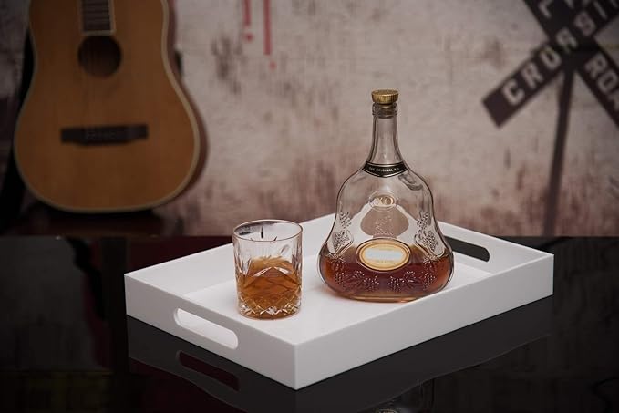 Glossy White Acrylic Serving Tray, 12x16Inch, Sturdy Kitchen Countertop Organizer, Decorative Vanity Table Tray, Ottoman Tray, 3/16 inch Thickness