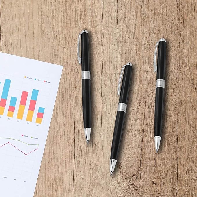 - Premium Black Pens: Elevate your style with the ballpoint pens featuring a sleek metal body in a stunning black finish; Perfect for men, women, flight attendants, police officers as uniform pen, or wedding guest books as guest pen; Measures 5.47" long with 0.39" diameter for a professional look