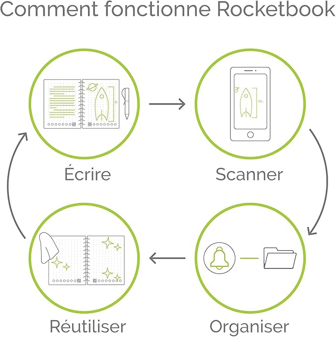 - App-Enabled for Digital Organization: The Rocketbook app allows you to scan and upload your plans & lists directly to cloud platforms like Google Drive, Dropbox, OneNote, etc. The app-connection ensures your notes are accessible from anywhere.
