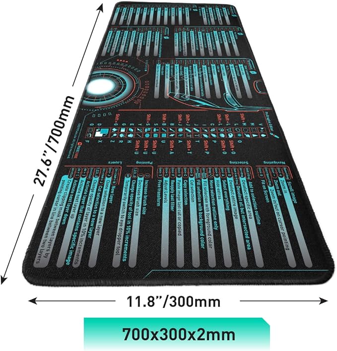 Windows, Office, Excel, Adobe Photoshop Shortcut Keys Extended Large Mouse Pad | Gaming Desk Mat for PC. Stitched Edge Non-Slip Base Mousepad, Keyboard Mat