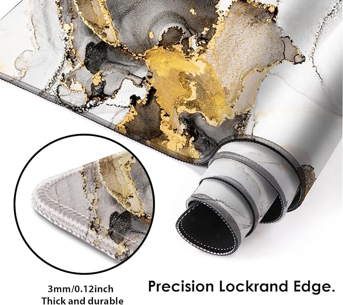 Galdas Large Mouse Pad XXL XL Large Mouse Pad Long Extended Mousepad Desk Pad Non-Slip Rubber Mice Pads Stitched Edges Thin Pad (31.5x11.8x0.12 Inch)-Ink White Gold Marble
