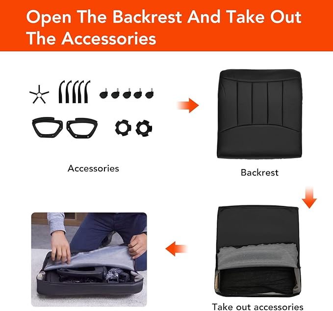 - Executive Swivel Chair -- Covered by the smooth, soft-touch leather ,this premium bonded leather task chair with padded back ,seat cushion and comfy armrest, offers great comfort and support at a reasonable price. 【NOTE】This chair is designed to be packaged specially. Some chair parts are packaged in the backrest interior. If you have any question, Do not hesitate to contact our customer service team for help! !