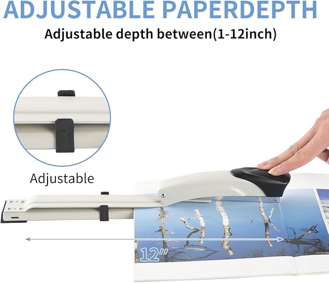 Long Reach Stapler,with 2000 Staples & Stapler Remover Full Strip,20-25 Sheet Capacity,with Built-in Ruler and Adjustable Locking Paper Guide, Gray