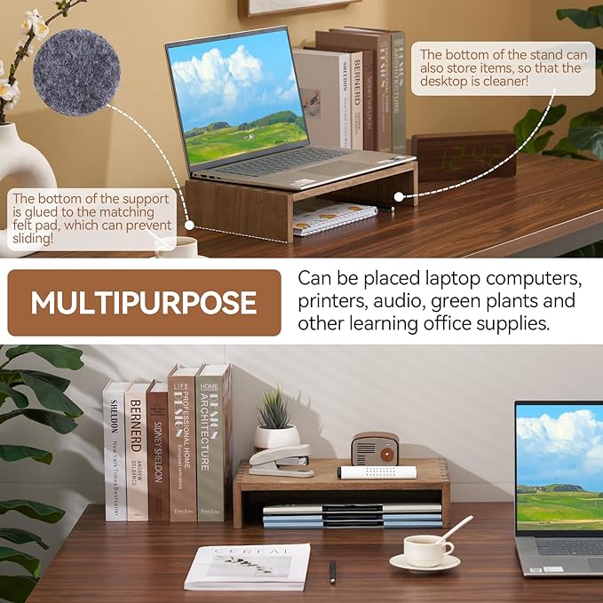 - [SELECTED SOLID WOOD]: This computer riser is made of selected solid wood with beautiful texture.