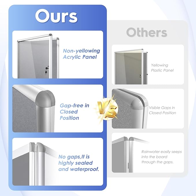 - Secure and Protected Display —Lockable acrylic doors and key mechanisms ensure that important information are kept safe from the elements, theft, or tampering.
