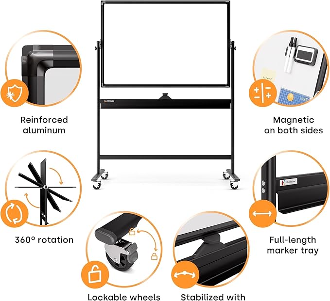 - Built to Last: Whether used in the office, classroom, or home, Kamelleo’s mobile dry-erase whiteboards are designed to hold up over years of frequent use. While other whiteboards will stain or break due to poor construction, our dry-erase whiteboards are known for their durability and reliability when you need it most!