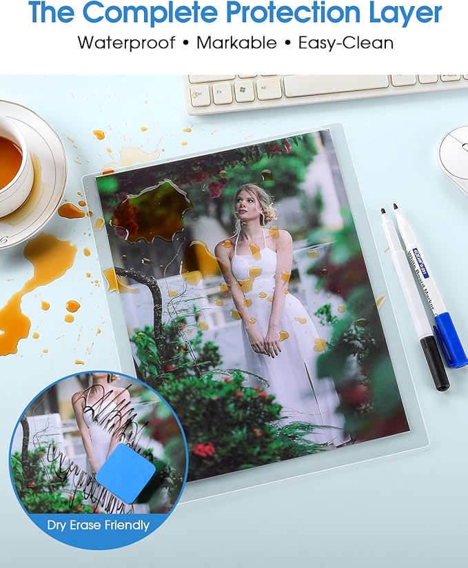 - Premium Material: Made from commercial-grade polypropylene, these laminating sheets create a water-resistant barrier for documents and photos. The tear-resistant edges withstand frequent handling, ideal for preserving important materials