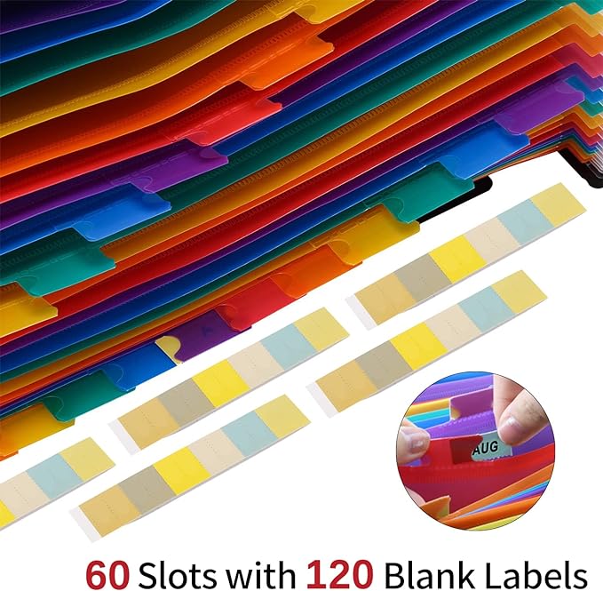 AFMAT Accordian File Organizer, 60 Pockets Large Expanding File Folder Organizer with Blank Labels, Letter/A4 Size Accordion Files Organizers Expandable for Receipt, Bill, Tax, Legal, Paper Filing