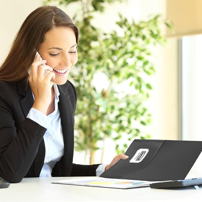 - Set of 3 Two pocket plastic folders: Three Plastic black folders, include adhesive labels that peel off cleanly. Use folders with side pockets as office folder, Black plastic folder