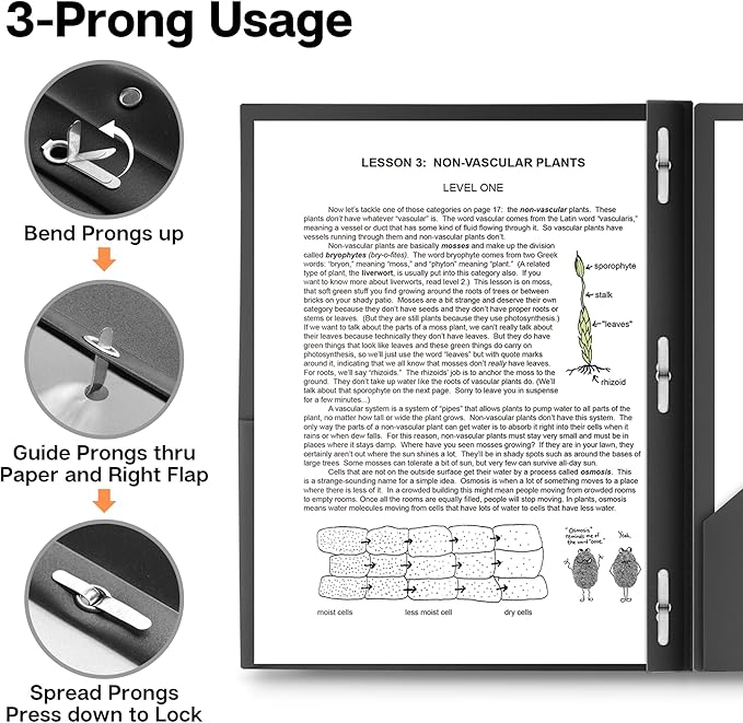 - 3 Prong 2 Pocket Folders: Set of 2, black 2 pocket poly folder with prongs. Use three prong plastic folders as school folders with prongs. For students, professionals.