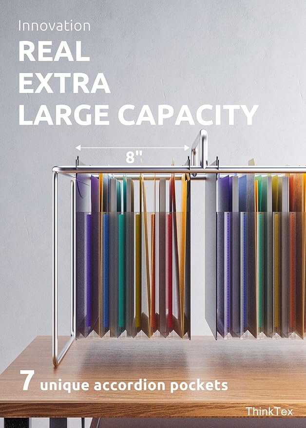 - CHEER UP YOUR FILE CABINET: ThinkTex innovative plastic hanging folder(Not suitable for Manila folders). Designed for letter size files and most standard files cabinets. 7 expandable pockets and 6 colorful dividers, large capacity