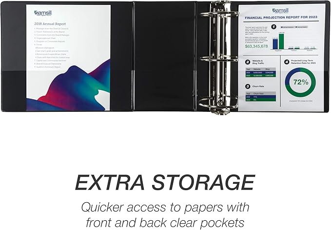 - Professional Look: Designed to impress during presentations and look great on a shelf, our 3-ring binder features back-lid-mounted D-shaped binder rings for a rivetless spine