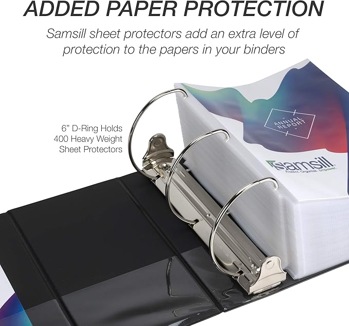 Samsill Durable 6 inch 3 Ring Binder, Made in USA, Locking D Ring FSC 100% Recycled Chipboard, Black, 2 Pack