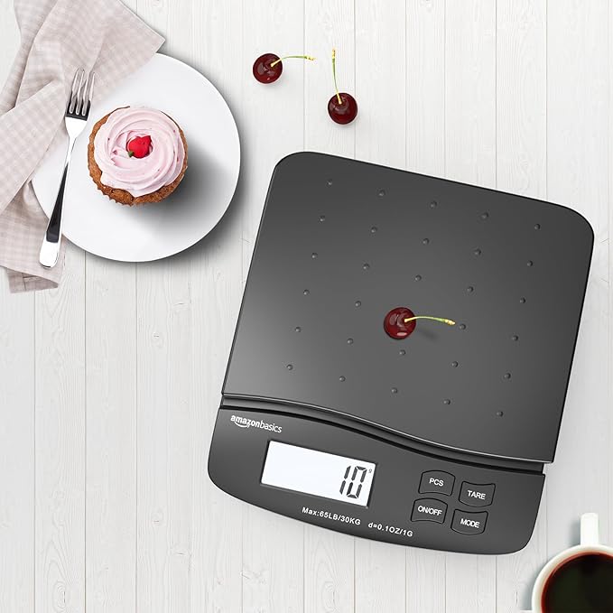 Amazon Basics Digital Postal Scale, AC Adapter, 65 lb Capacity, 0.1 oz Readability, Black