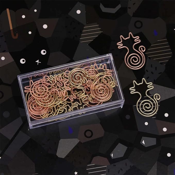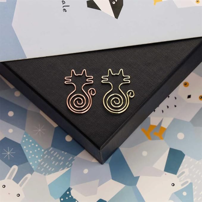 OWLFAVO 40pcs Cat Shape Paper Clips with Clear Box, Rose Gold and Yellow Gold, Funny Cute Paperclips Bookmarks Planner Clips for Fun Office Supplies School Gifts Wedding Decoration