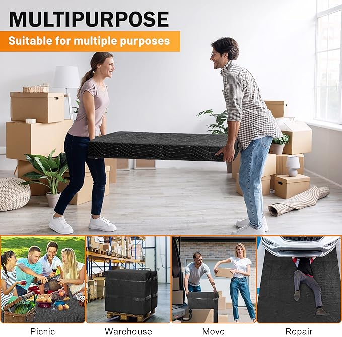 - Professional Grade: Oversized Blanket are excellent for big furniture. You can lay them across all types of padding items like bedframes, dressers, armoires, or covering large art pieces when packing, storing or shipping. 80" x 72" will help to ensure that all of your expensive belongings are covered and protected during your big move