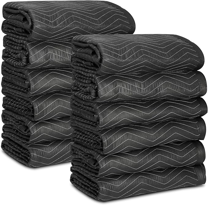 12 Moving Packing Blankets 80 x 72 Inches (65 lb/Dozen) Heavy Duty Moving Pads for Protecting Furniture Professional Quilted Shipping Furniture Pads
