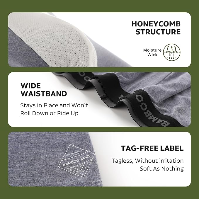 BAMBOO COOL Men's Ultra Breathable Underwear,No Riding Up Boxer Briefs with ComfortFlexible Waistband,Multipack