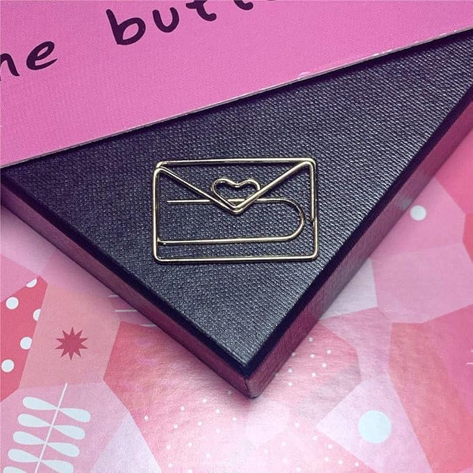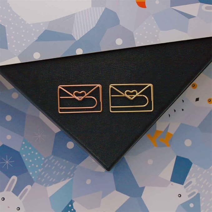 OWLFAVO 30pcs Envelope Shape Paper Clips with Clear Box, Rose Gold and Yellow Gold, Funny Cute Paperclips Bookmarks Planner Clips for Fun Office Supplies School Gifts Wedding Decoration