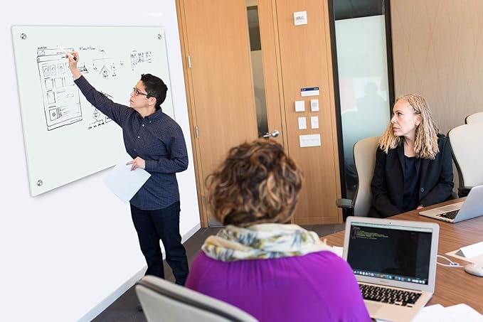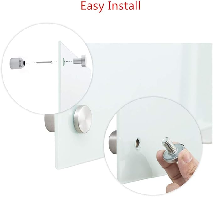 Magnetic Glass Whiteoard with Eraser 48" x 36" Frameless Tempered Glass Dry Erase Whiteboard with Marker Tray for Interactive Office, Wall Mounted Whiteboard (White)